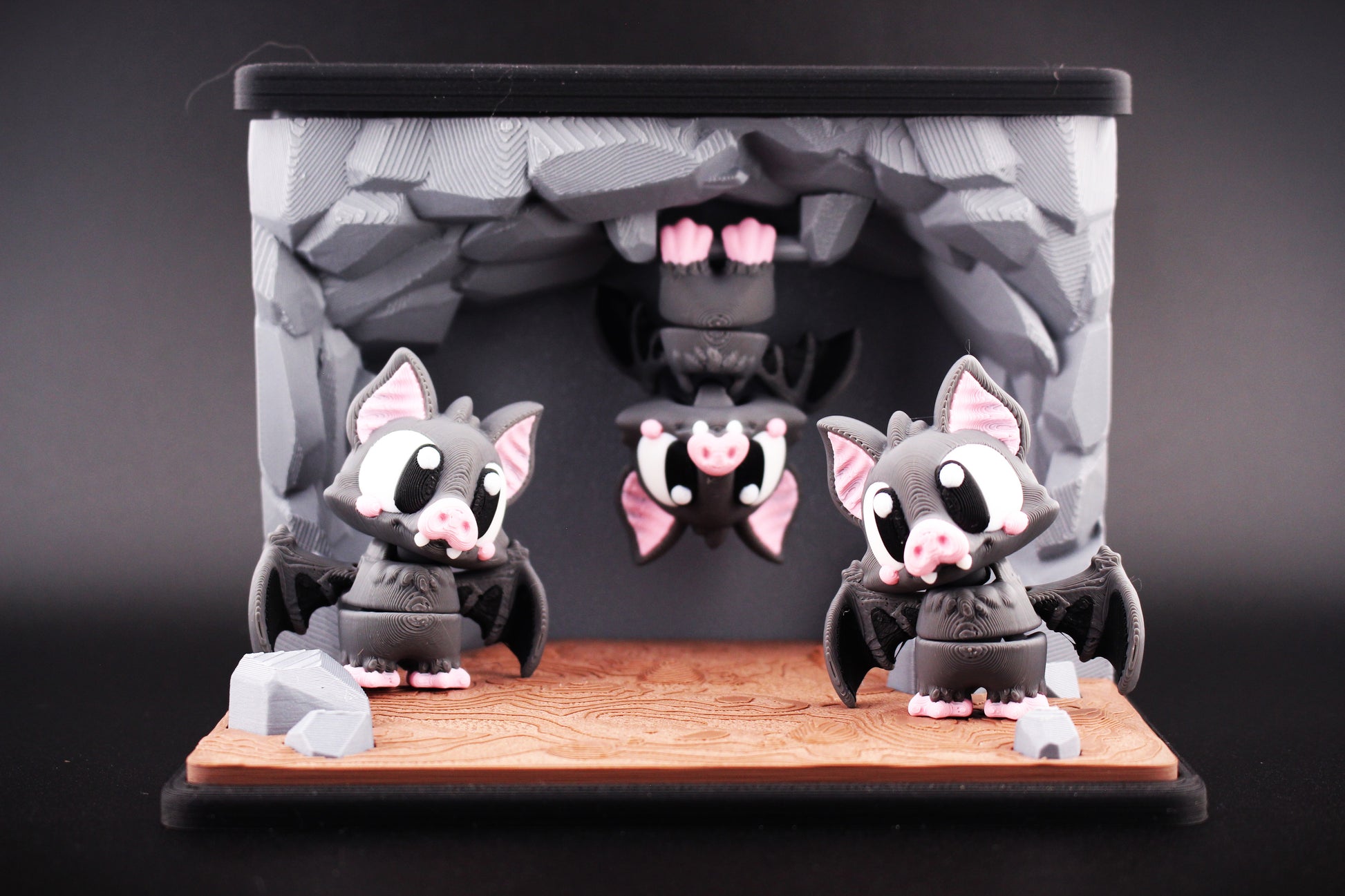 Bring a little midnight magic to your collection with our Bat Cave Diorama! This adorable set comes with three Bat Pocket Friends nestled inside their rocky hideaway ā two standing on the cave floor and one specially designed to hang upside-down from the roof, just like a real bat.