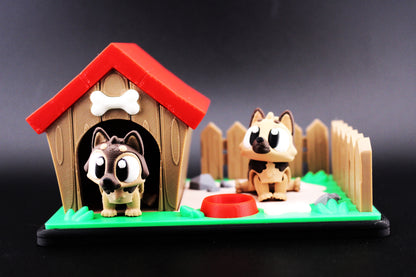 Includes a 3D-printed kennel, yard base, and fence panels