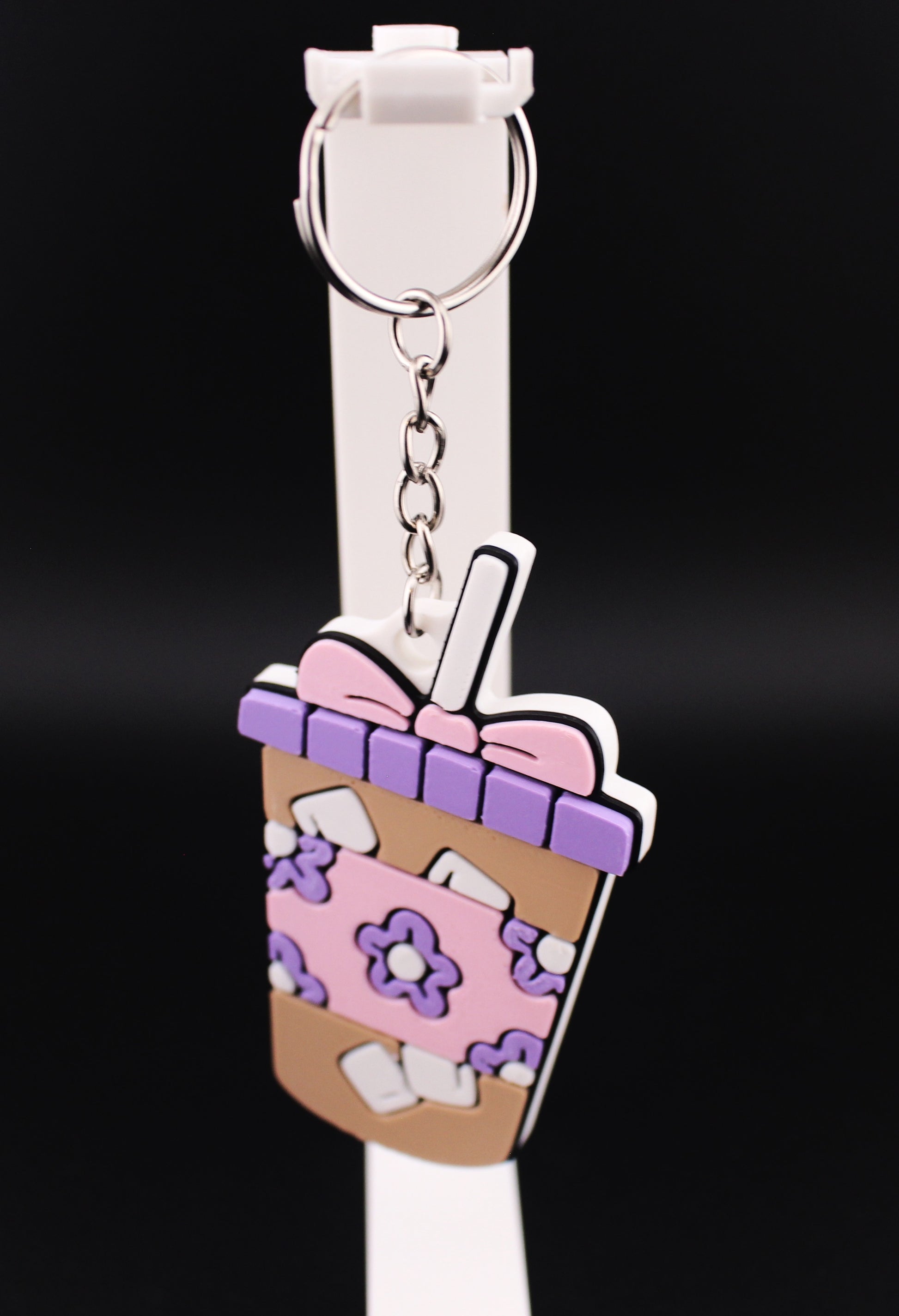 Take your love for iced coffee wherever you go with this iced coffee tumbler keytag! Featuring a cup design with straw, ice cube details, and floral accents, it’s both fun and functional — and now even smarter with built-in NFC.