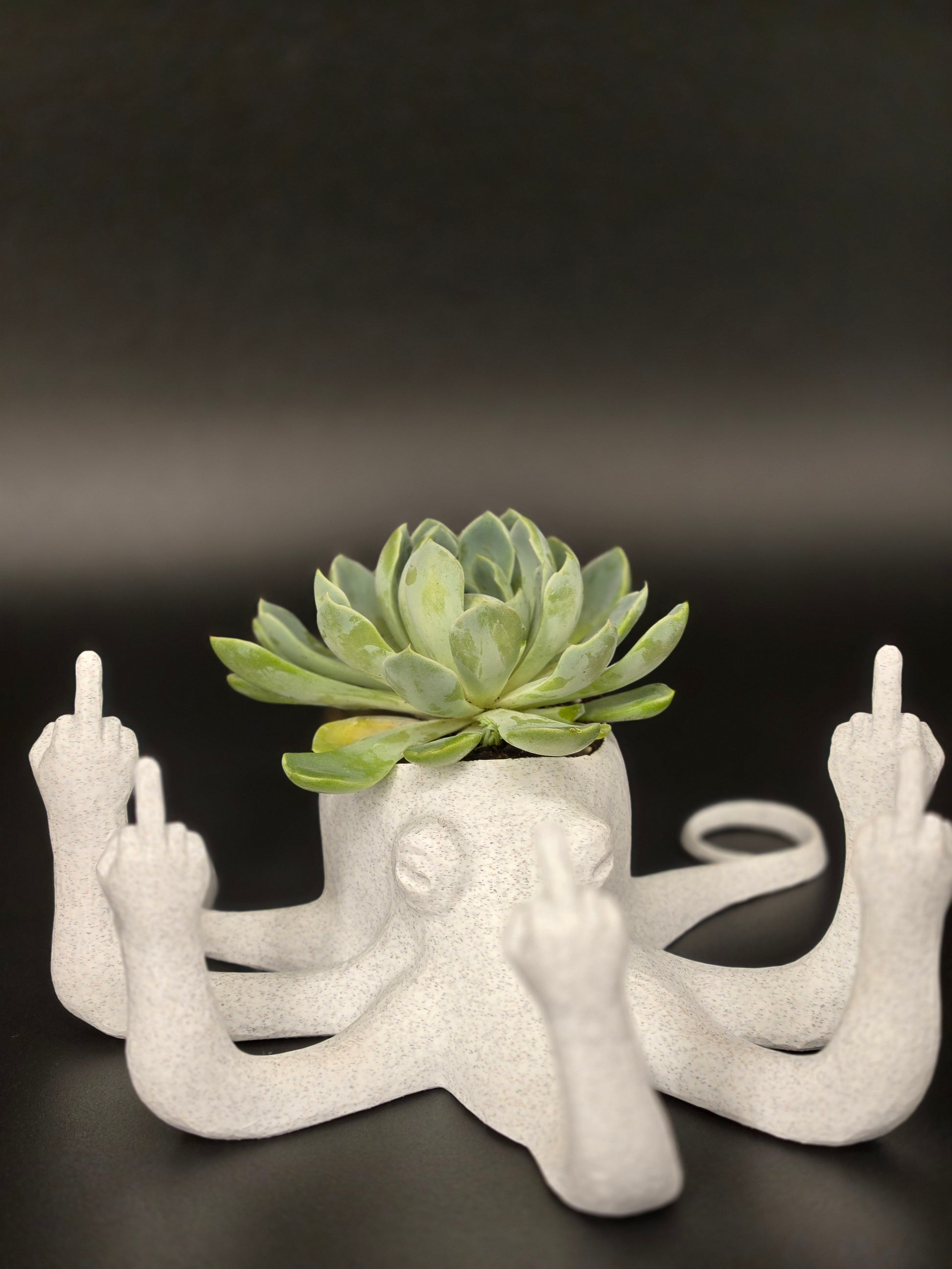 White marble effect PLA Octopus statue with planter hole. 23cm. Also available in plain white, grey and black. *Plant for display purposes only*