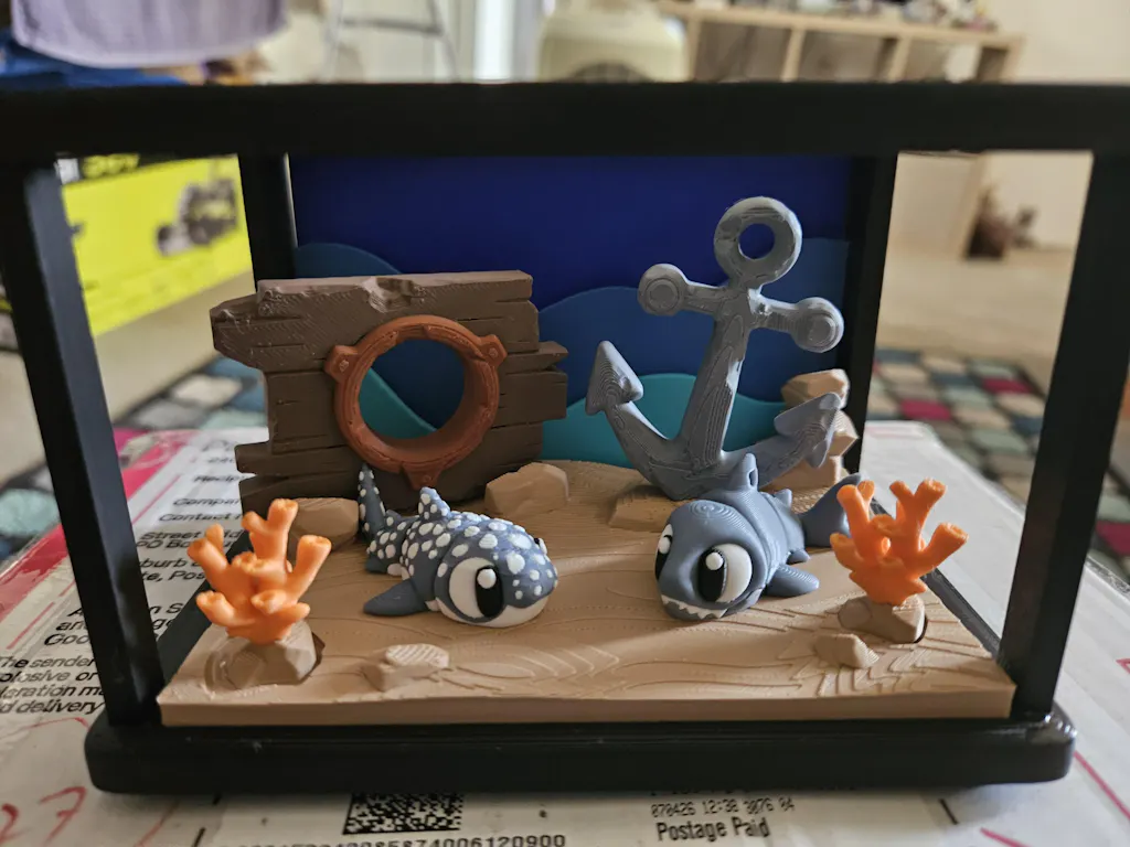 The enclosure is designed as a fun DIY project, allowing you to build and display your own mini ocean scene. Once assembled, it becomes the perfect showcase for your adorable shark companions.