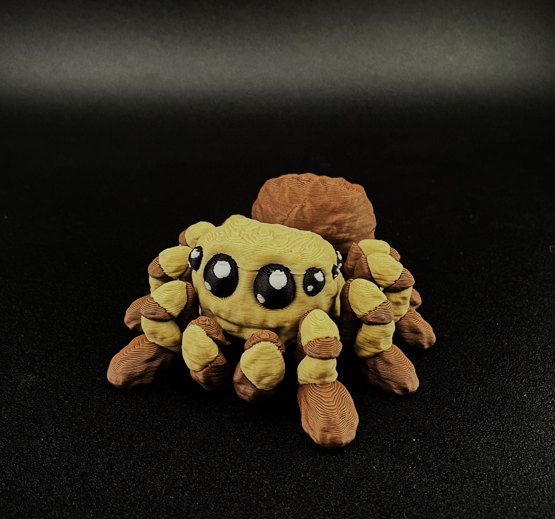 Made from durable PLA filament, this eight-legged buddy is flexible, posable, and sized just right to carry in your pocket or display on your desk.